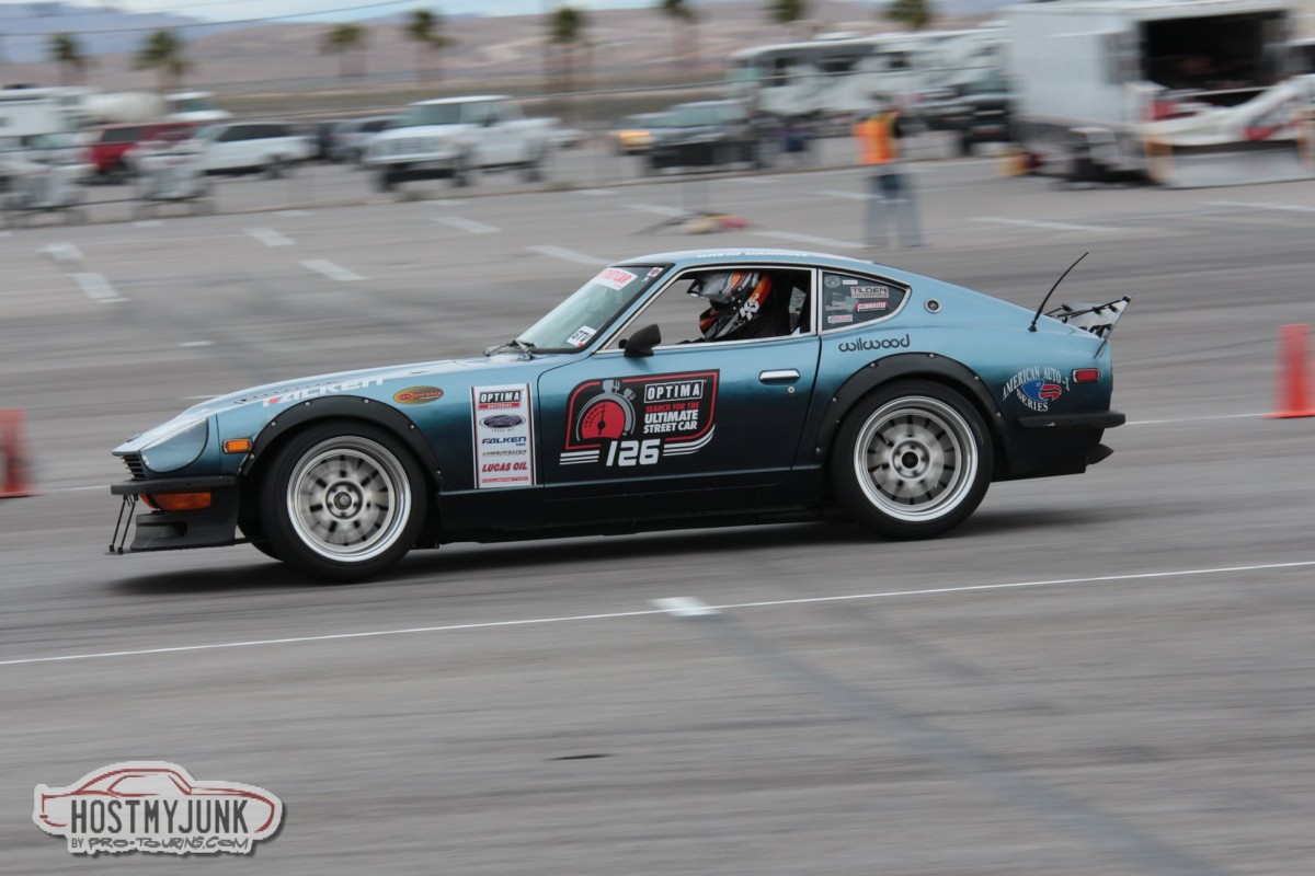 The weather was the coolest I’ve seen at an USCA Vegas event with cloudy skies, wind and temps of around 60*.  Without any sun to warm the pavement the weather definitely shook things up depending on tire choice.  I was lucky to be on the Falken RT615K+ which excel in the cool weather.  But it was CB Ramey in the 1984 C4 Corvette took the lead from session 1 and held it almost the entire day.  Autocross Competitors got 4 sessions total with lap counts of 3, 2, 3 and 2 respectively.  While CB and I dropped time each session he managed to keep the lead and I second place.  However, the rest of the GTV ranks jumped all over the place.  Positions 3-8 almost changed entirely with each session.