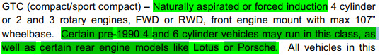 There are additional clarifying rules for hatchback specific cars of any class. Also, a 12″ chord restriction on the size of wings in the GTV class.